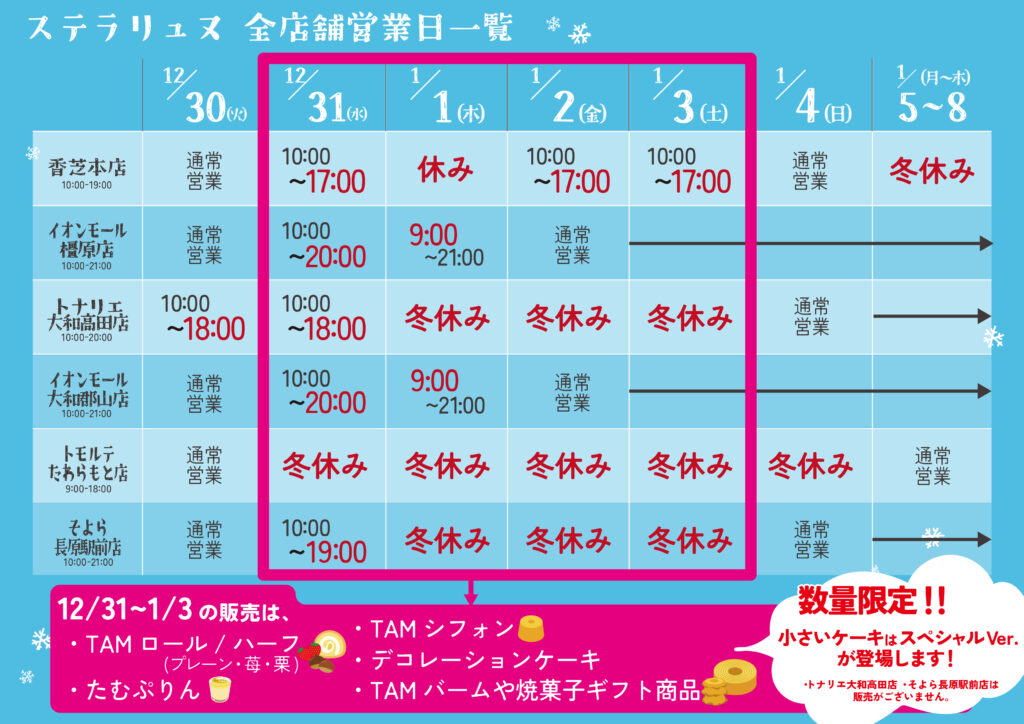 2025年10月1日からトモルテたわらもと店の営業時間を「9:00-18:00」[TAM'SCAFE9:00-17:30…Read more -